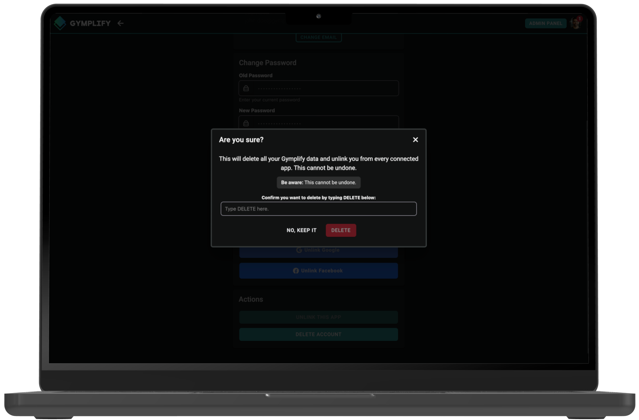 This will remove all your app data and unlink your account from all connected apps. All data you entered yourself—such as account information and recorded workouts or weigh-ins—will be permanently deleted. We do not keep any of your data after account deletion.